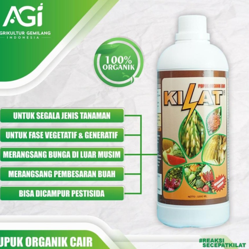 Kocor POC Kilat 1 tutup botol/1 liter air dosis 1 gelas air mineral/tanaman (tanaman horti dan palawija).